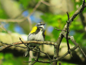 In August, I visited the Hartwick Pine State Forest in Michigan, hoping to spot a Kirtland Warbler.  The entrance guide said I had almost no chance--too late in the season--and she was correct.  Alas.  But I was able to hike through some of the last remaining old-growth forest in Michigan, a real treat.  And I also found this Rose-breasted Grosbeak by ear because I remembered it sounds like an American Robin that has taken singing lessons.  And now I HAVE exhausted all of my knowledge of bird calls.